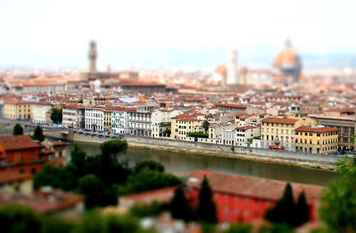 Ah this was once a boring flat photograph I took of the city of Florence last year in Italy. But thanks to some photoshoppery I recently learned it now looks like a little model of Florence!Oh the joy of geeky photo sadness...